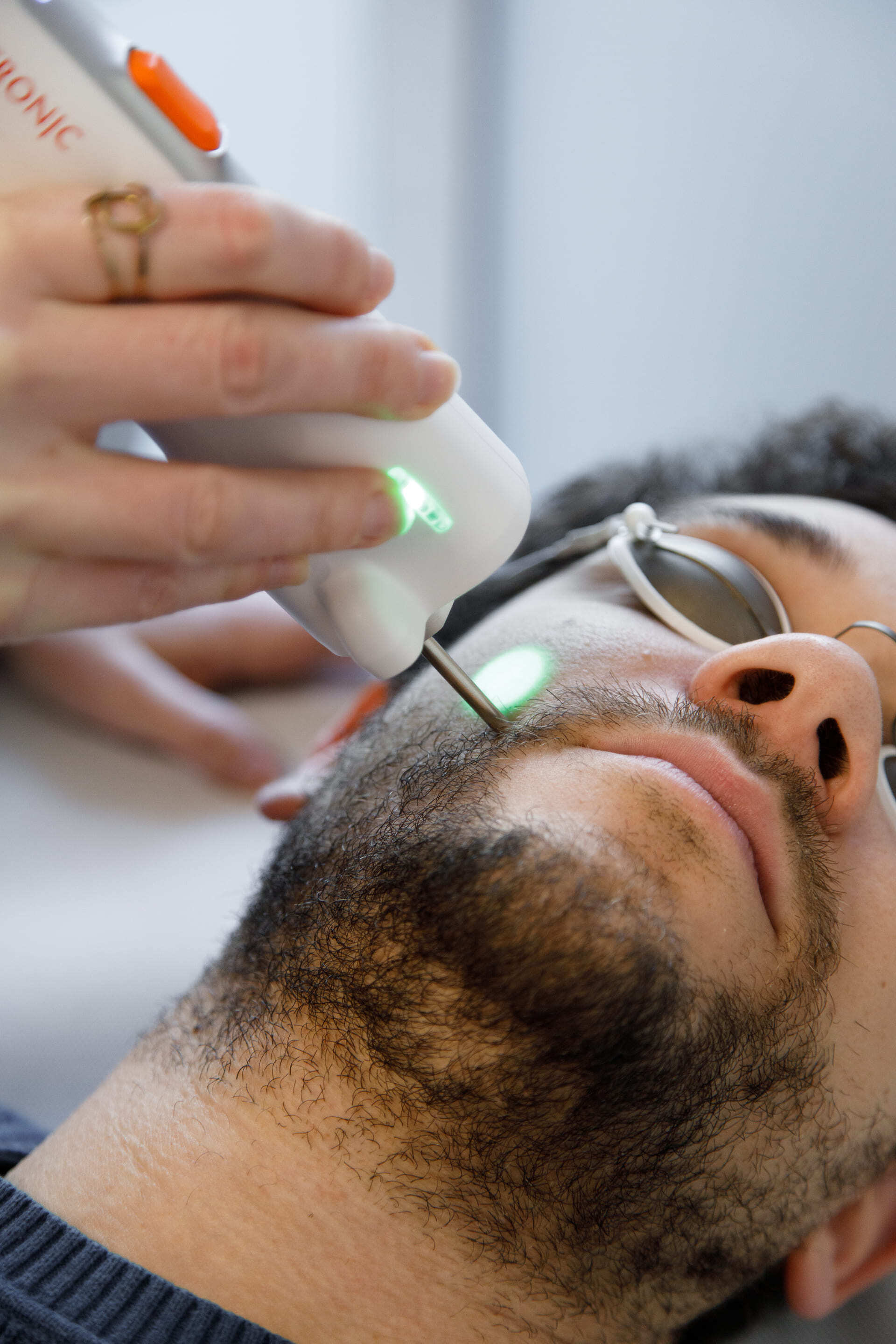 Le laser médical cible le bulbe du poil avec une grande précision, sans toucher la peau environnante. Résultat : une réduction progressive et durable de la pilosité, même sur les zones délicates comme la lèvre supérieure, le menton ou les joues.